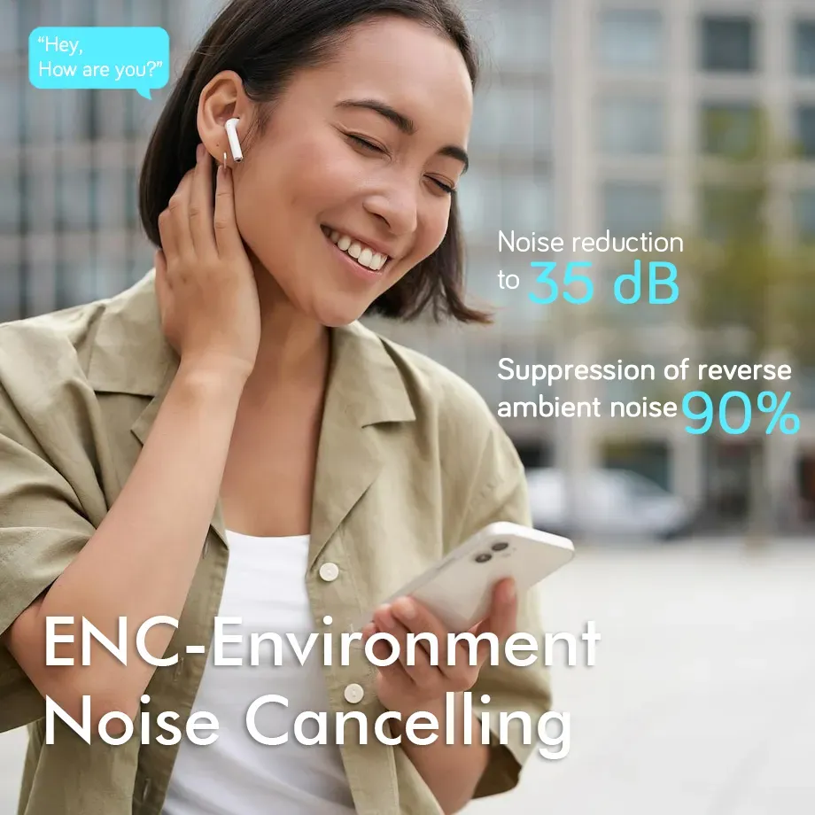 Experience deep, immersive noise cancellation that silences the world around you. From bustling commutes to noisy offices, our earbuds create your personal oasis of sound, allowing you to focus on what truly matters.